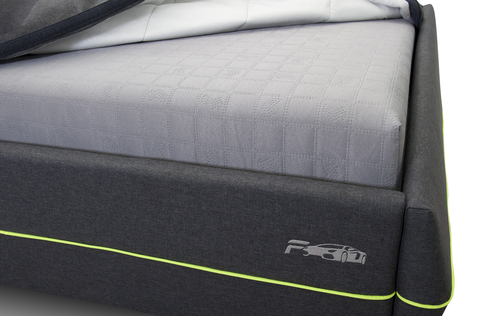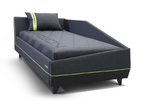 Основание кровати –на выбор: матрасный блок на металлокаркасе (на независимом пружинном блоке, съемный чехол приобретается отдельно), либо металлокаркас с березовыми ламелями (матрас 1,9х0,9 приобретается отдельно)
