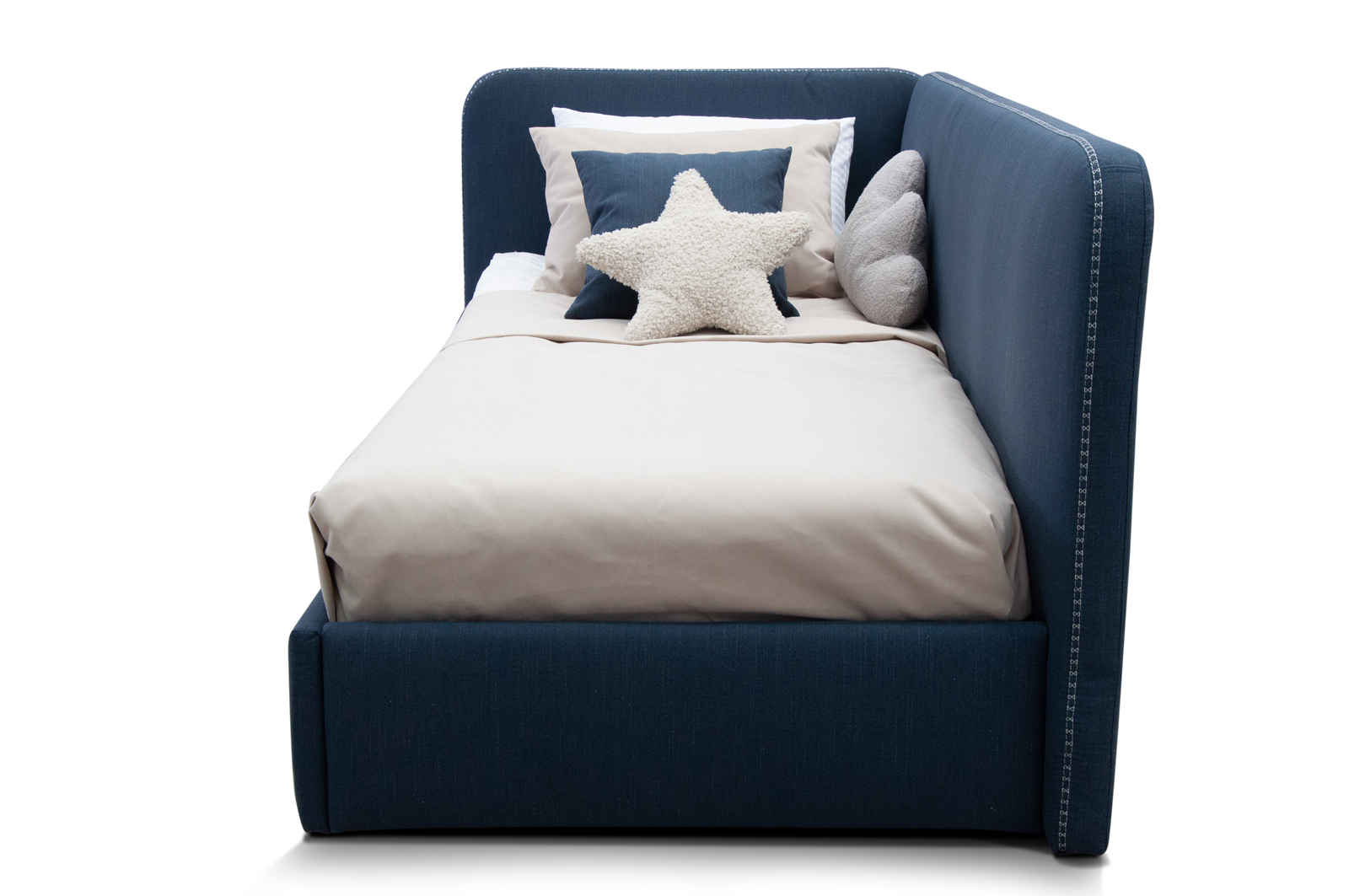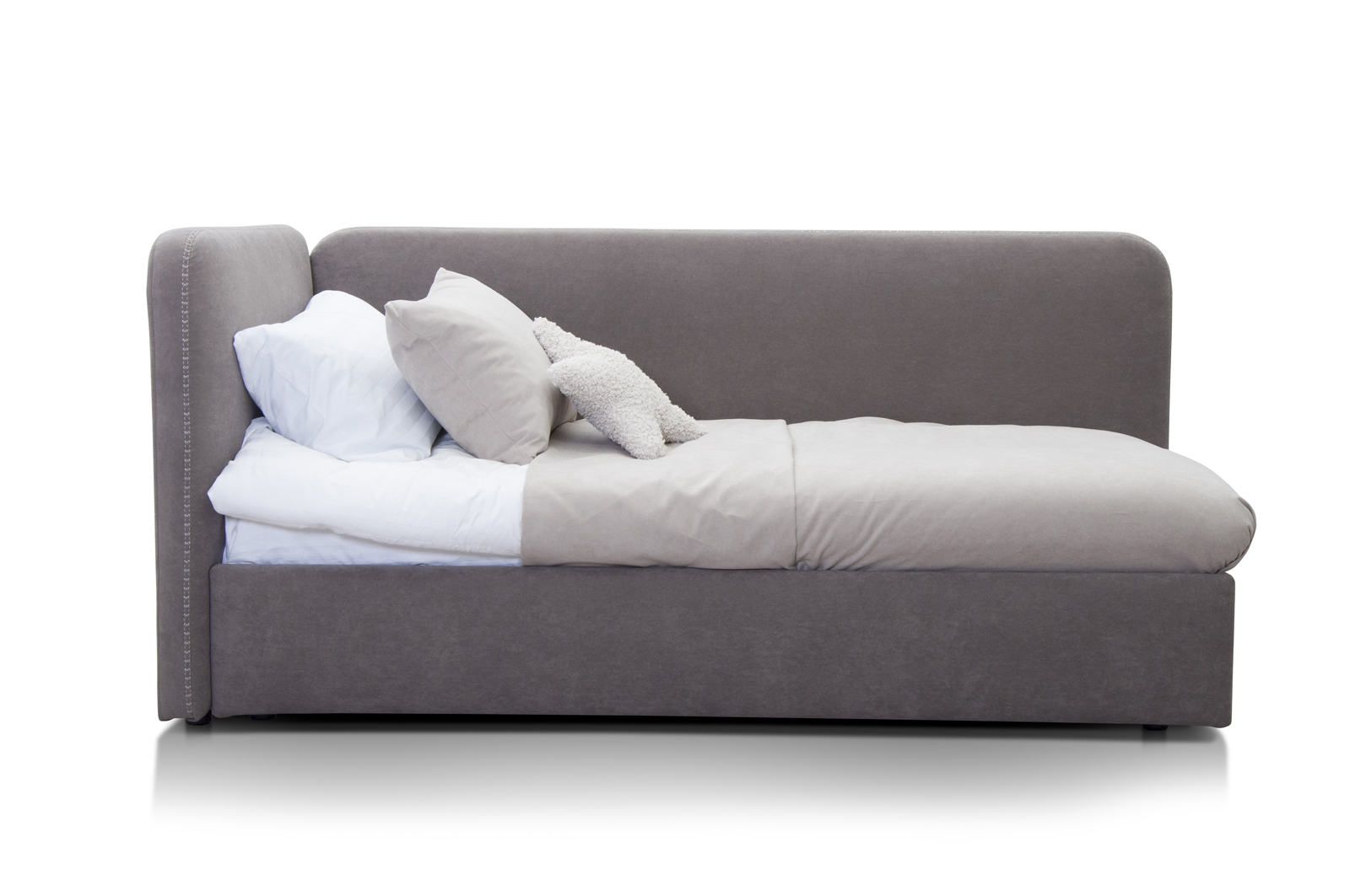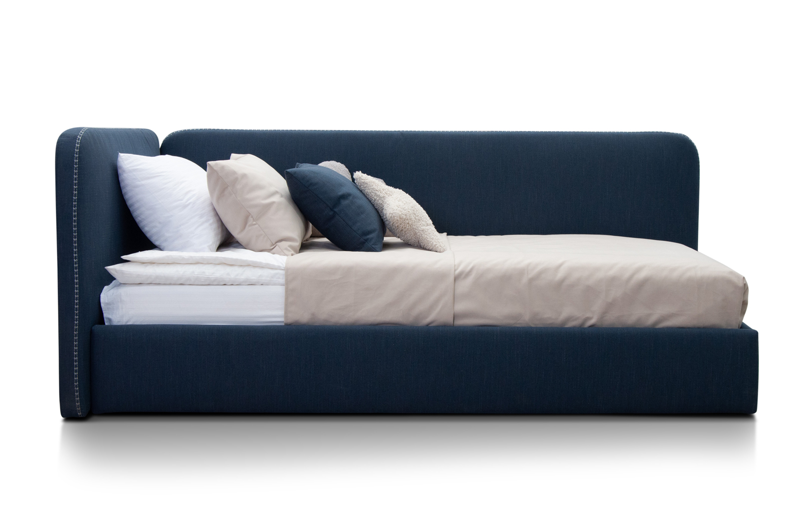 - Изголовье и передний борт оформлены декоративными швами